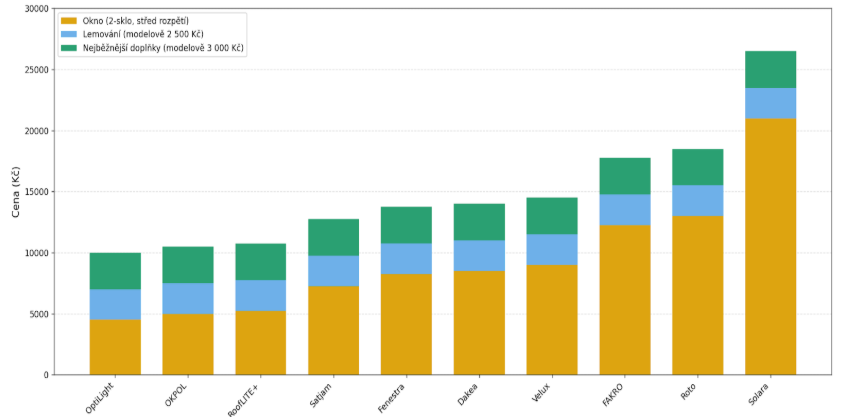 „Na grafu je vidět, že samotné okno je jen část investice. Po započtení lemování a základních doplňků je celková cena o 30–40 % vyšší.“