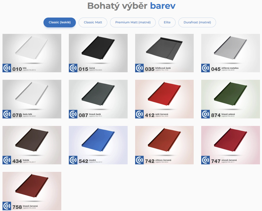 Elite – silnější ochranná vrstva, dlouhá barevná stálost, záruka až 30 let.