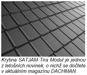 Letošní vydání magazínu DACHMAN se ohlíží za 30 lety působení na trhu, které SATJAM aktuálně slaví. Čtenáři v něm také najdou informace o inovacích ve výrobě, které přinesou ještě lepší užitné vlastnosti a dostupnost materiálů, a přehled produktových novinek. Těmi nejvýraznějšími je nová ocelová krytina SATJAM Tira Modul, ucelená řada materiálů pro falcování SATJAM ProfiFalc® s novými barvami, několik vylepšení pro krytiny SATJAM Rapid, inovace lávek a sněhových zábran SATJAM Safe a řada dalších.
